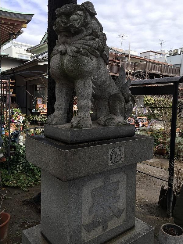 境内の至る所で招き猫を見かけるのですが、狛犬も二対+1並んでいました。