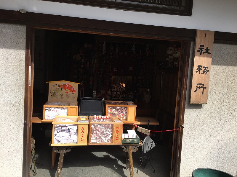 授与所の右奥にある社務所には招き猫にちなんだ多くの授与品が並んでいました。