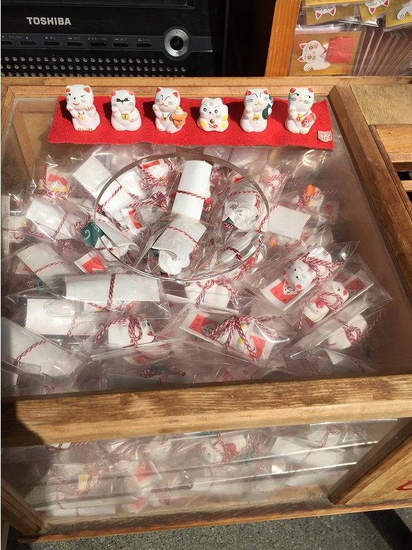 陶器のおみくじは、6種類の招き猫の陶器がおみくじについているもので、とても可愛いです。