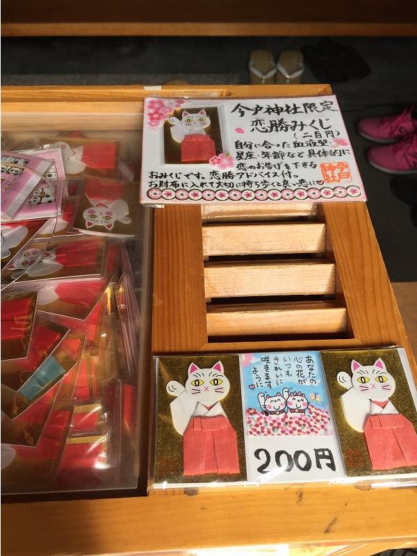 恋勝みくじは紙でできた巫女姿の招き猫のようなしおり型になっており、お財布などに入れて身に着けることができるようになっていました。